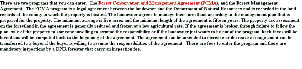 The purpose of the following programs is to encourage landowners to manage their forestland in return for a reduced and/or frozen property tax